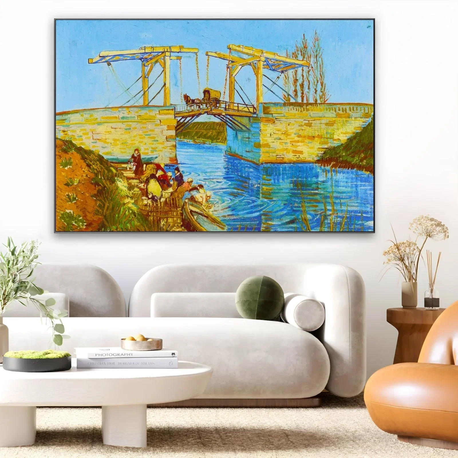 Il dipinto "Bridges of Arles" di Vincent Van Gogh rappresenta un ponte levatoio situato nella città di Arles, in Francia. Questa stampa su tela cattura l'essenza della vita quotidiana del XIX secolo con un tocco di vivacità e colore.