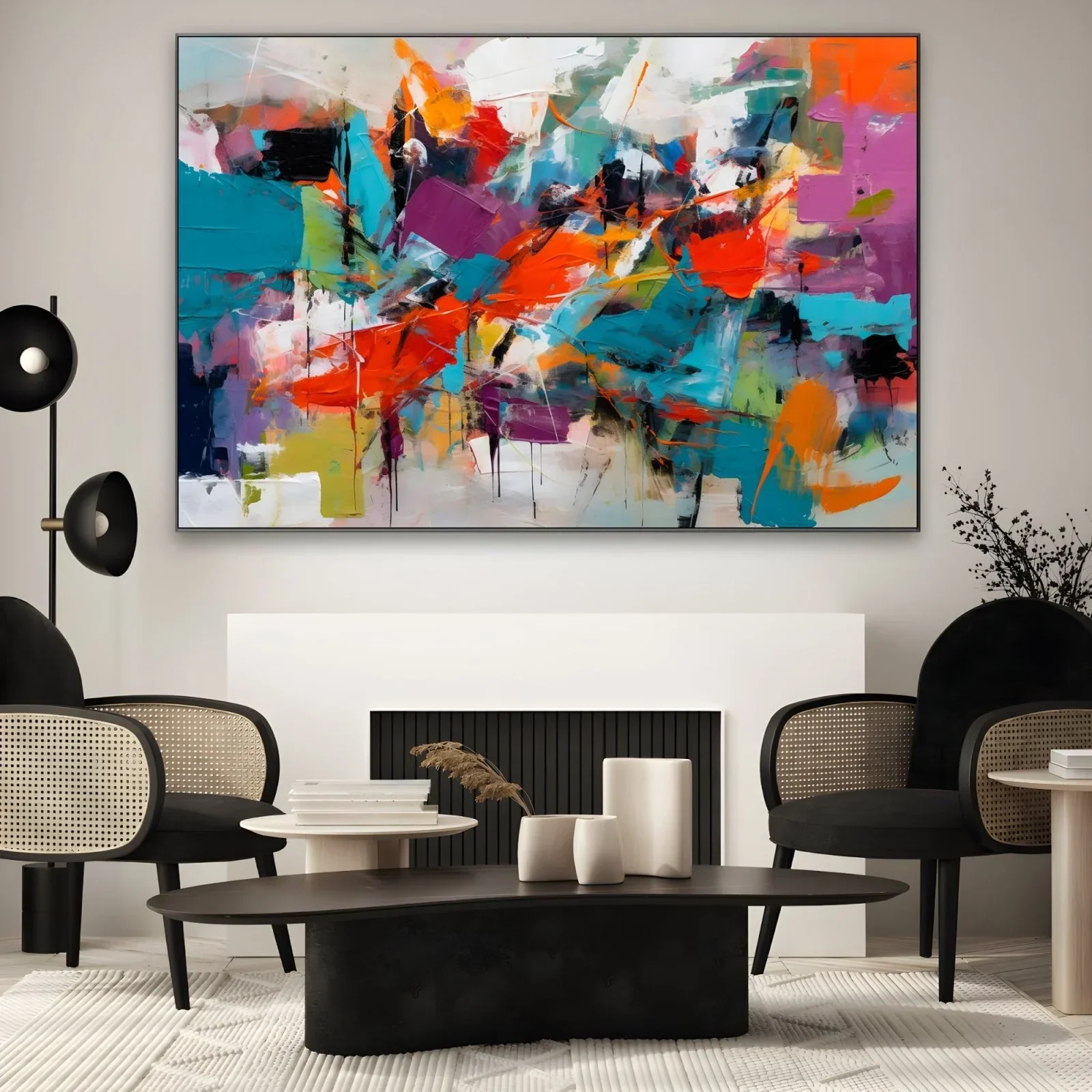Il quadro "Espressione Artistica" è una stampa su tela che cattura l'essenza dell'arte astratta contemporanea. La composizione dinamica e vibrante è caratterizzata da pennellate audaci e sovrapposizioni di colori intensi.