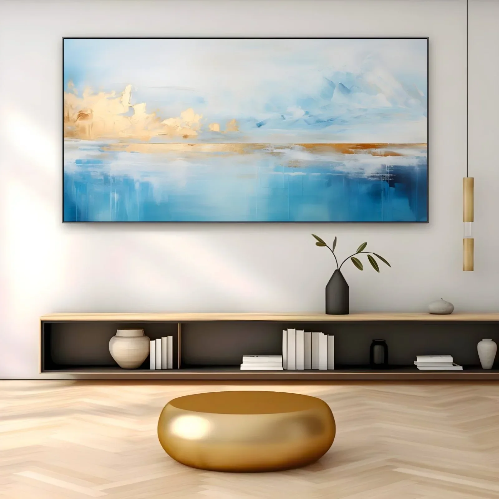 "Luminosità Sospese" è una stampa su tela che cattura l'essenza di un paesaggio etereo e tranquillo. Questo quadro moderno utilizza una combinazione armoniosa di colori per creare un'atmosfera rilassante e contemplativa.