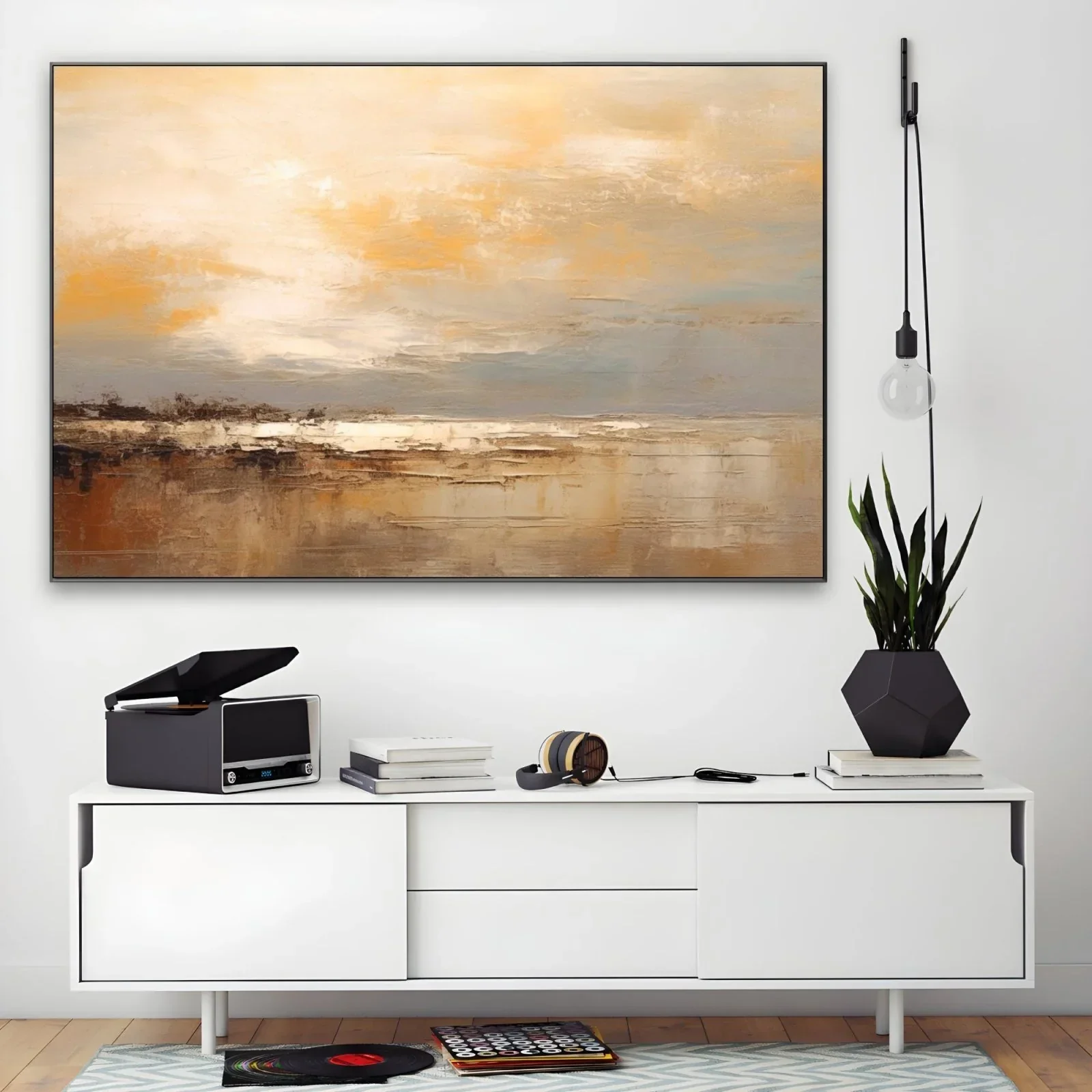 "Sinfonia dorata" è una stampa su tela che cattura l'essenza di un paesaggio sereno e armonioso. Questa opera d'arte astratta utilizza una palette di colori caldi e terrosi, tra cui sfumature di oro, beige e marrone, che si fondono delicatamente per creare un'atmosfera rilassante e contemplativa.